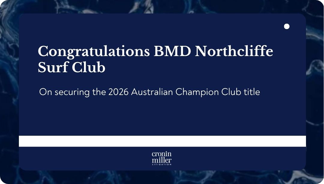 Cronin Miller is delighted to congratulate BMD Northcliffe Surf Club on securing the 2026 Australian Champion Club title.
